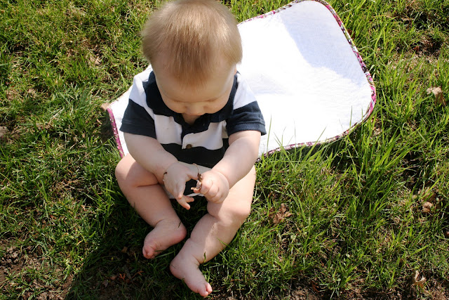 Then we took a blanket and toys outside and homeboy rolled around, army crawled, ate some leaves and grass. Basically he got REALLY dirty - just like a little boy should :)